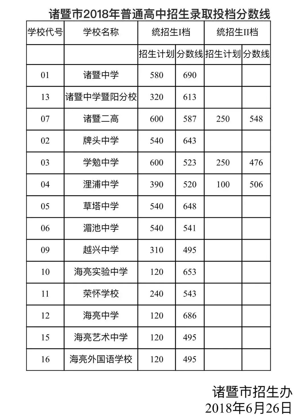 这是去年诸暨各校的中考录取分数线,大家可以对比看看!↓↓↓