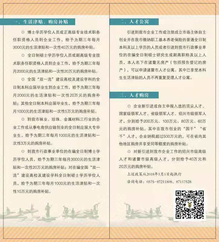 诸暨人才购房政策: