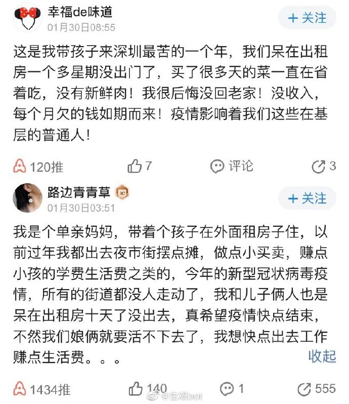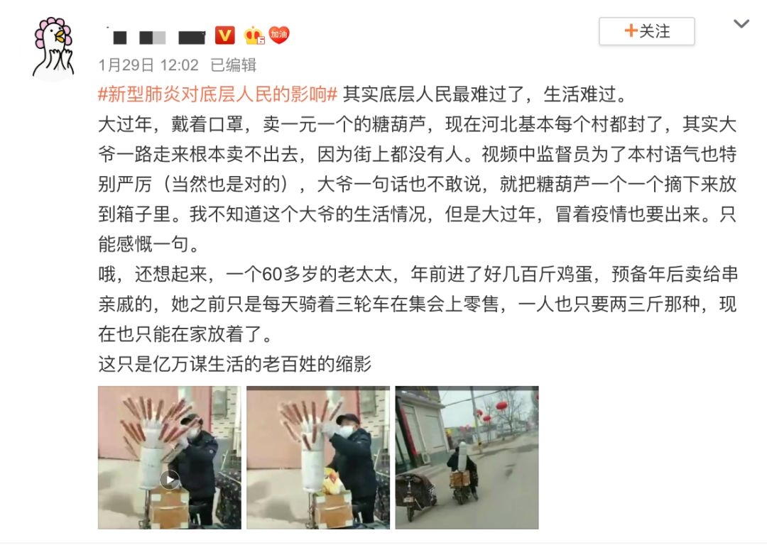 最开始让我忧虑的是网络上一组#新型肺炎对普通人的影响#的讨论。