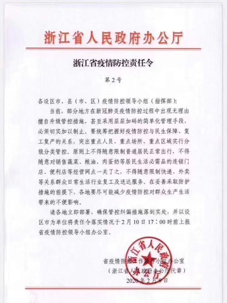 这是2月9日浙江省疫情防控责任令(第2号)上的内容。