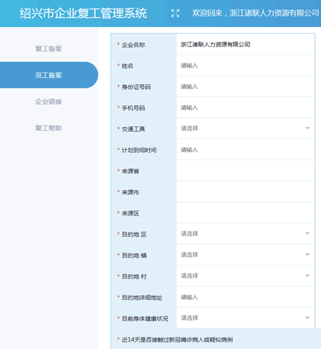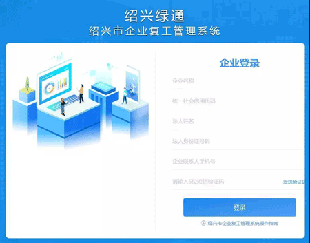 企业复工从审批制改为备案制,完成复工备案后即可按计划复工复产。绍兴市企业复工管理系统(http://qyfg.sx.gov.cn)是全市企业复工备案信息填报平台,由企业自主填报,内容包括填报复工备案信息、组织填报市外员工返绍备案信息并进行审核。具体可在登陆界面下载《绍兴市企业复工管理系统操作指南》对照填报,有疑问的,可咨询属地乡镇(街道)、行业主管部门,相关联系方式可在系统上查看。外籍人士用护照号登陆,港澳台人士用港澳台通行证登陆。