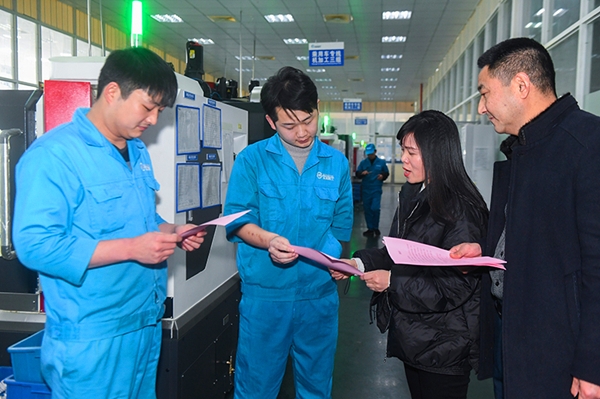 1月13日,浙江诸暨一家企业的车间内,诸暨市人力资源和社会保障局的工作人员将倡议书发到外地员工手中,普及各项暖心举措,倡导外地员工留在诸暨过年。