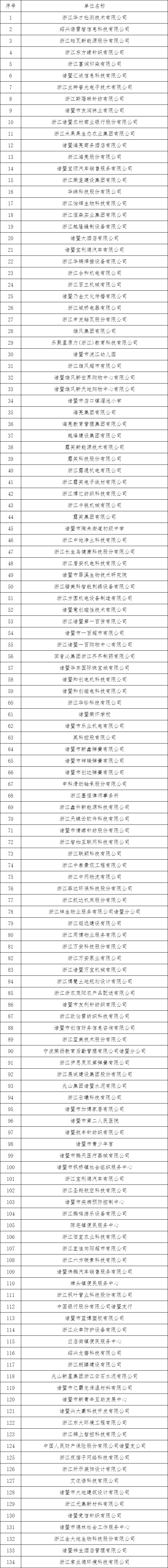 诸暨市大学生就业见习实习基地名单(排名不分先后)