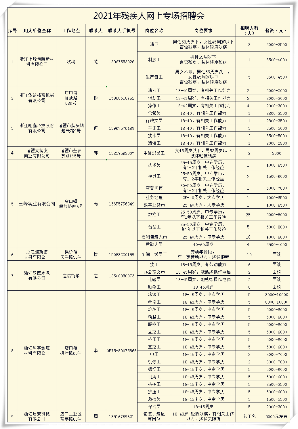 2021年残疾人专场招聘企业公布了