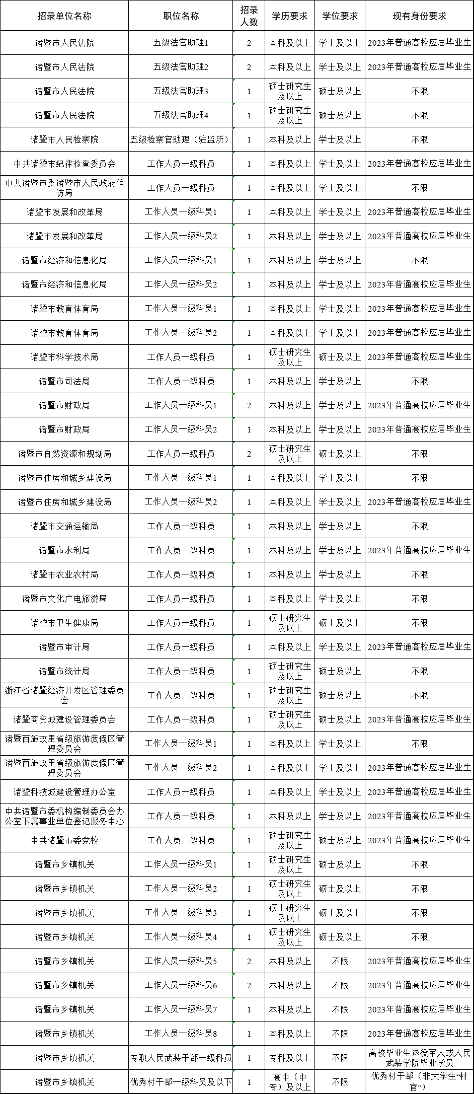 2023年诸暨市公务员计划招考75名