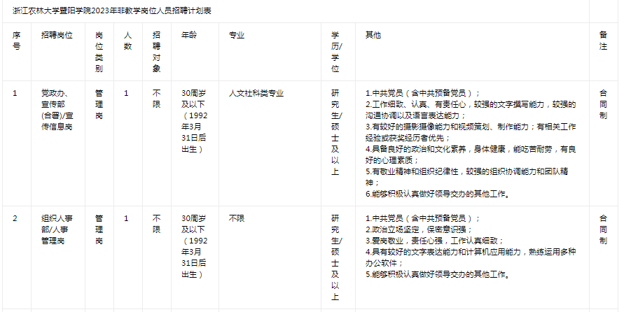 因工作需要,浙江农林大学暨阳学院拟面向社会公开招聘非教学岗位人员,现将有关事项公告如下:
